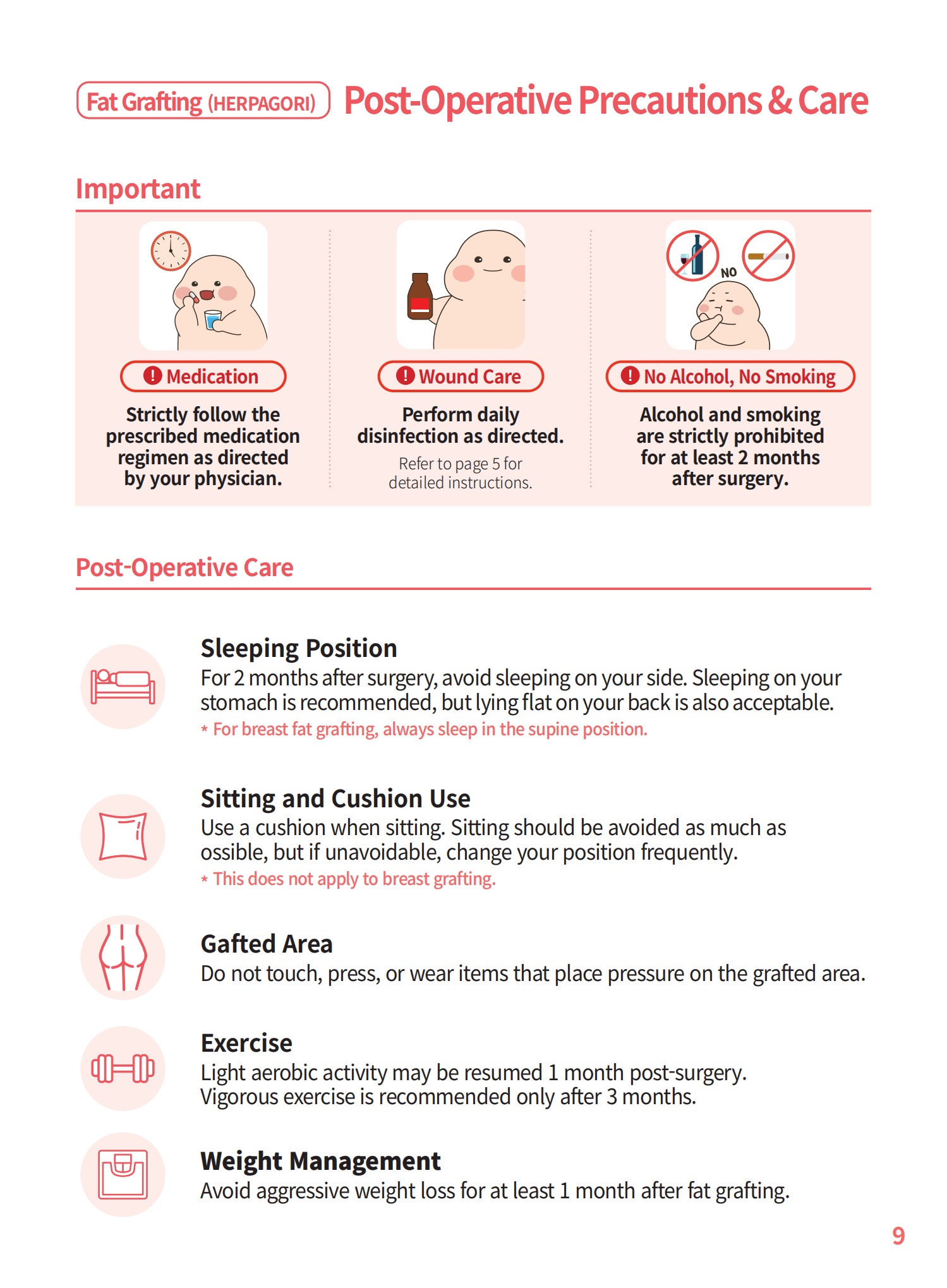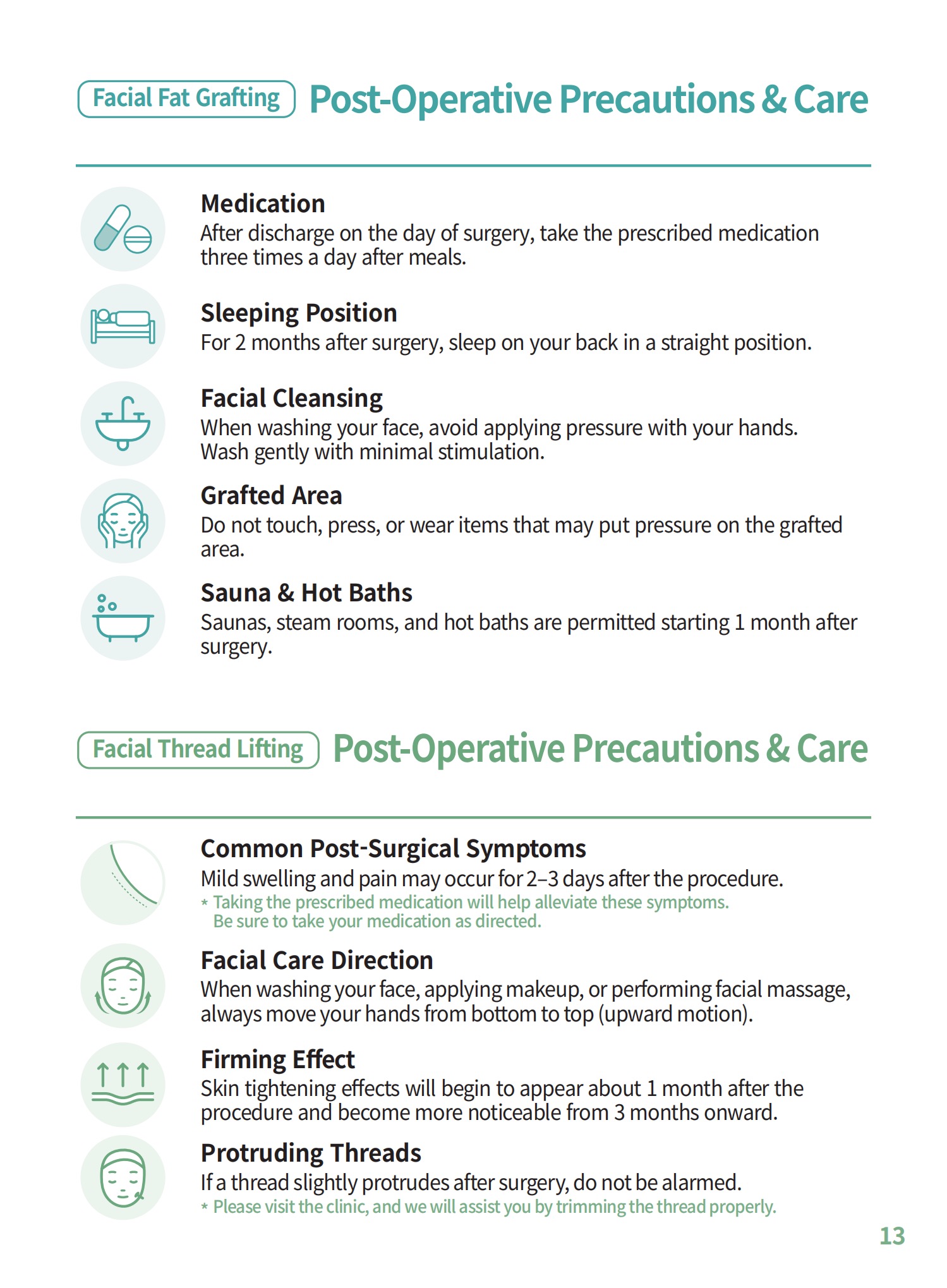 ⑬ Alcohol and smoking are prohibited for at least a month after surgery.